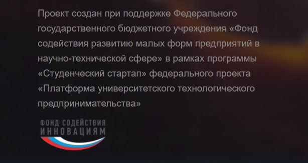 Проект выполнен при поддержке «Фонда содействия инновациям» в рамках программы "Студенческий стартап" федерального проекта «Платформа университетского технологического предпринимательства» |